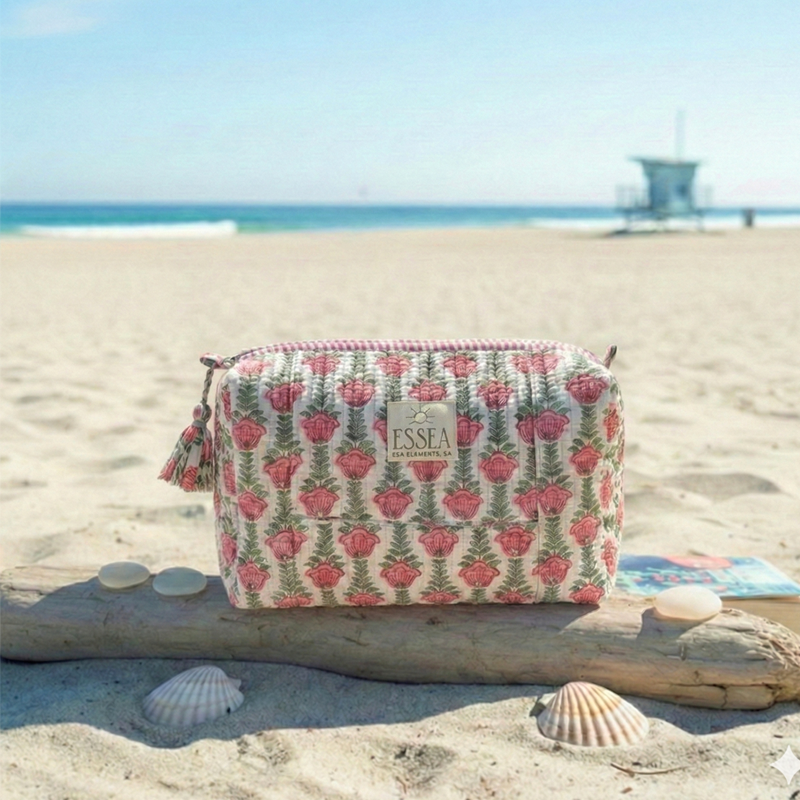 Designed for daily routines, weekend travel, and life on the go, the Essea Cosmetic Bag blends effortless coastal style with thoughtful functionality. Each bag is handcrafted using traditional block-printing techniques, giving every piece a unique character rooted in slow, intentional design.